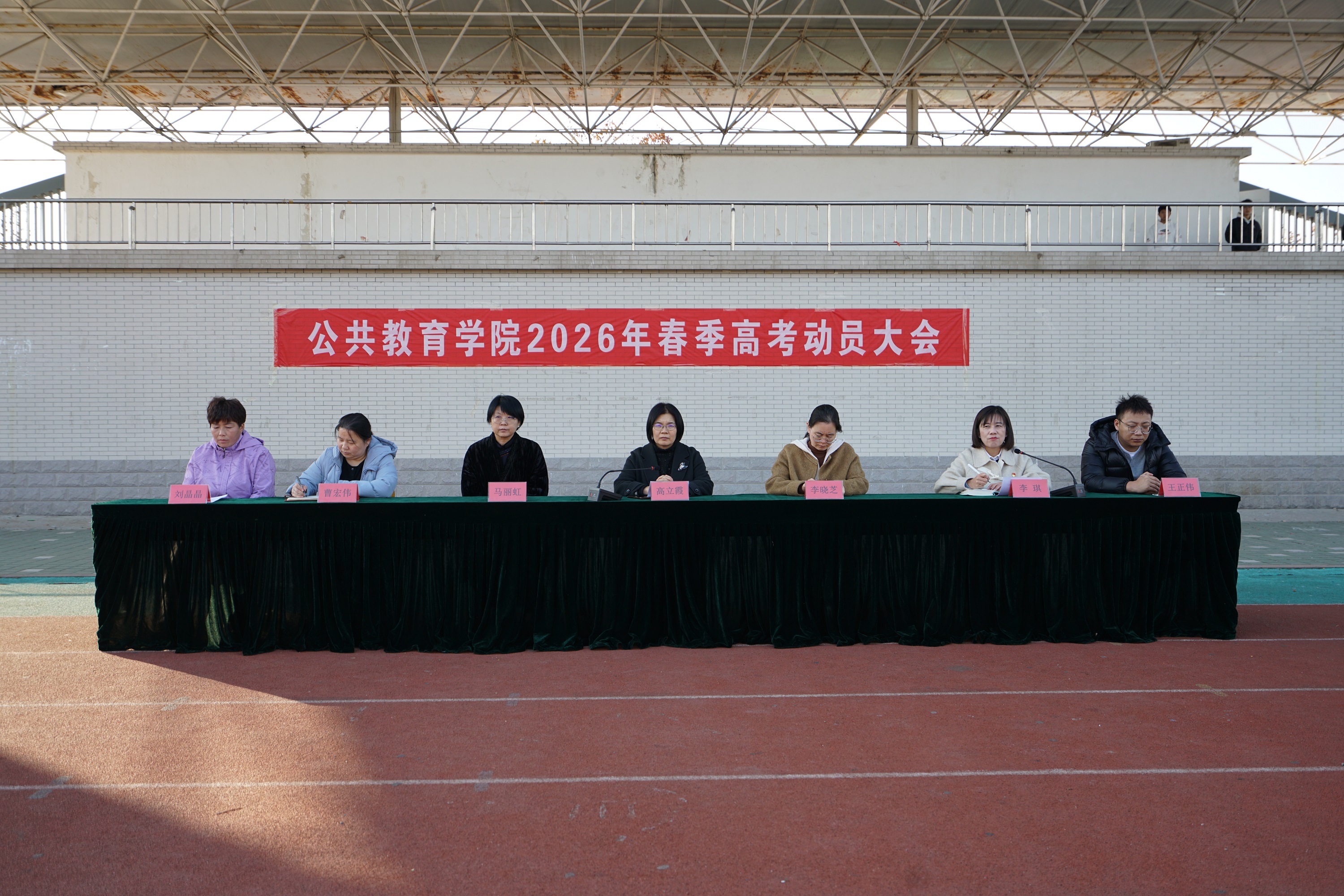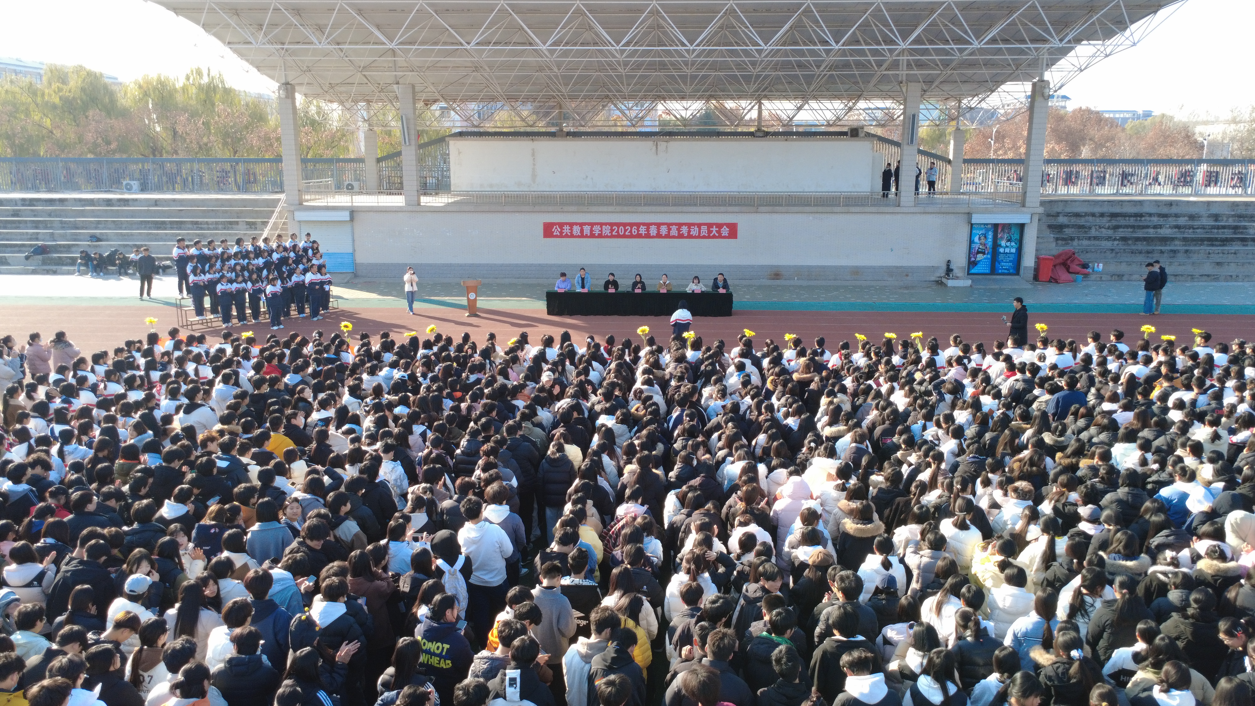 11月19日下午,公共教育學院在學院體育場隆重舉行2026年春季高考動員大會,為1000余名備考學生鼓舞氣勢、激發昂揚斗志、堅定必勝信念。學院黨委委員、副院長高立霞出席活動并作總結講話,學生工作部、教務處等部門負責人,公共教育學院23級、25級全體師生與家長代表共同見證了這一鼓舞人心的時刻。